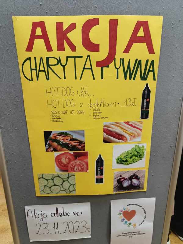 23 listopada 2023 roku odbyła się w naszej szkole akcja charytatywna na rzecz dzieci ze Stowarzyszenia „Wszystkie Dzieci Nasze Są”. Akcję wspaniale przygotowali i przeprowadzili uczniowie klasy VIII. Cieszymy się z ogromnego odzewu oraz dziękujemy wszystkim, którzy wsparli tę inicjatywę. Uczniowie klasy VIII zebrali kwotę 820 zł, która w całości zostanie przekazana na konto Stowarzyszenia.