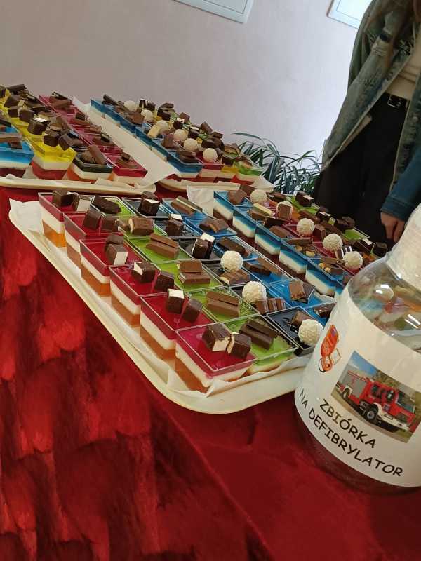 1 kwietnia Samorząd Uczniowski wraz z Radą Rodziców zorganizował kiermasz pysznych galaretek. Celem akcji było dołączenie się do zbiórki Ochotniczej Straży Pożarnej na zakup profesjonalnego defibrylatora AED, który będzie dostępny dla całej naszej lokalnej społeczności w sytuacjach zagrożenia życia. Kiermasz cieszył się ogromnym zainteresowaniem uczniów, nauczycieli oraz rodziców, którzy chętnie wsparli inicjatywę, kupując słodkie przysmaki.