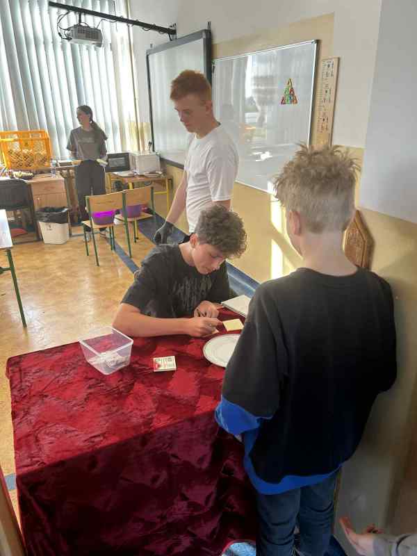 Akcja cieszyła się dużym zainteresowaniem – już od rana ustawiały się kolejki, a w szkolnym korytarzu unosił się zapach świeżo grillowanych burgerów. Ósmoklasiści z bardzo dużym zaangażowaniem przygotowywali składniki, obsługiwali stoisko i zachęcali do zakupów. Całkowity dochód ze sprzedaży w kwocie 626 zł został przekazany na rzecz stowarzyszenia.