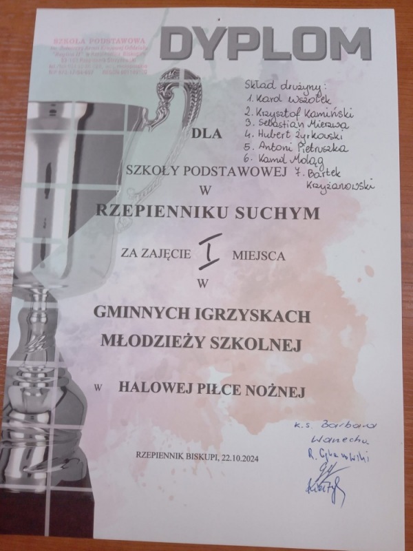 I miejsce w Gminnych Igrzyskach Młodzieży w halowej piłce nożnej
