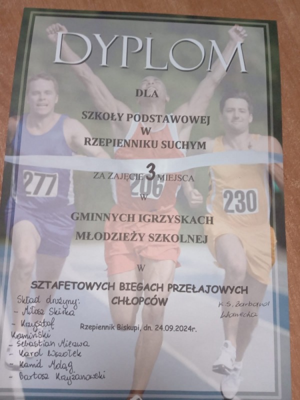 III miejsce w Gminnych Igrzyskach Młodzieży Szkolnej w sztafetowych biegach przełajowych chłopców