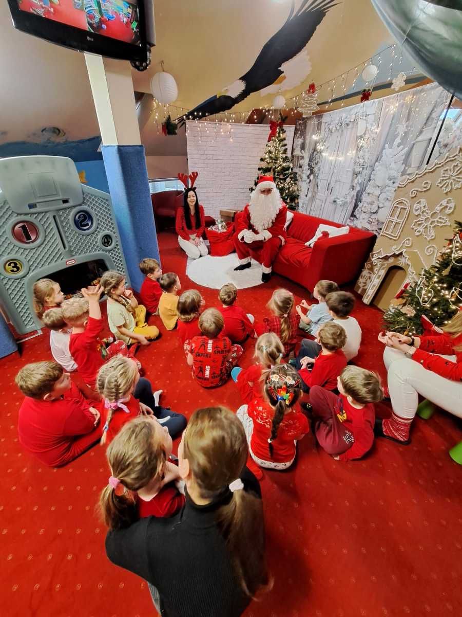 W tym roku Mikołajki w naszym oddziale przedszkolnym miały wyjątkowy charakter. Dzieci wraz z rodzicami wybrały się na wycieczkę do sali zabaw. Przedszkolaki mogły swobodnie korzystać ze wszystkich dostępnych zabaw, a dodatkową radość sprawiła możliwość wykonania brokatowych tatuaży. Nie zabrakło także wspólnych tańców, gier i animacji, które wprowadziły wszystkich w świąteczny nastrój.
