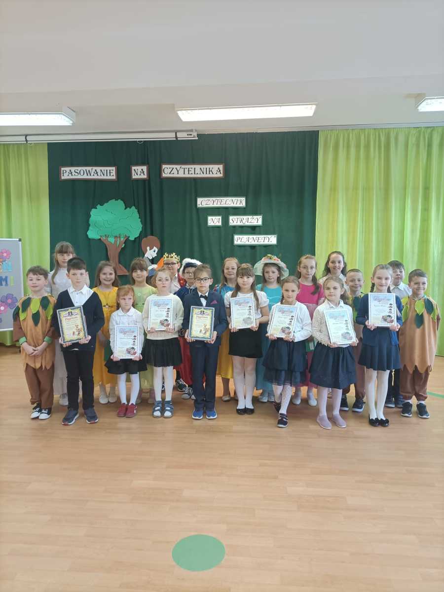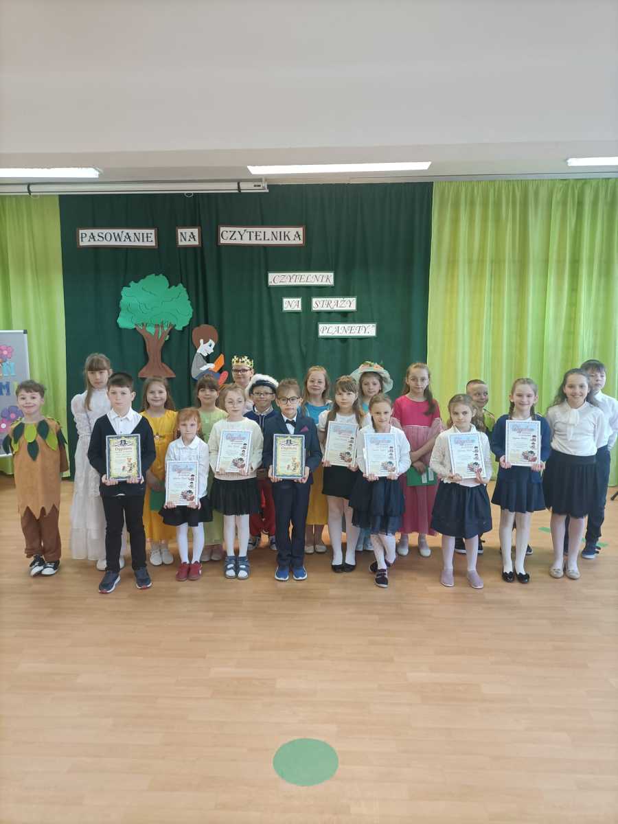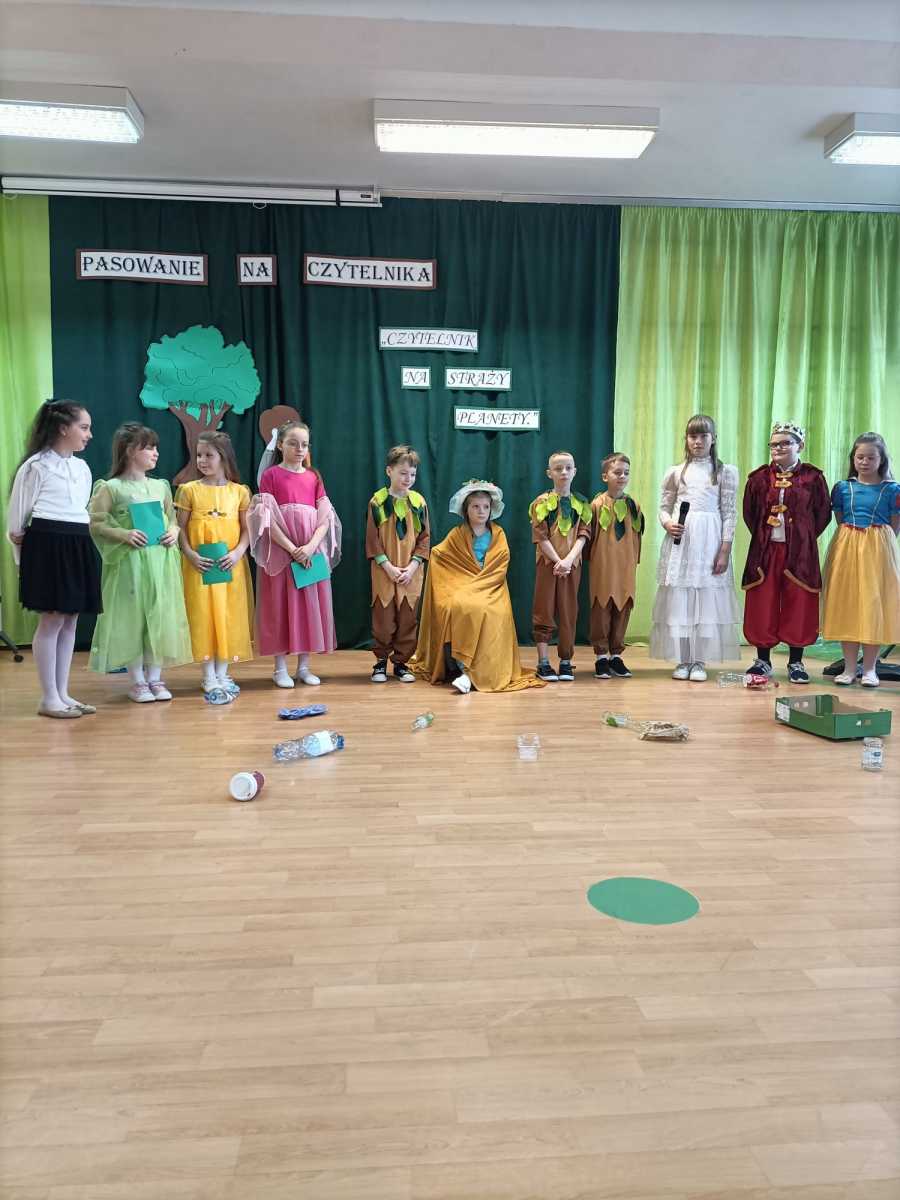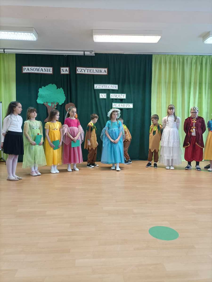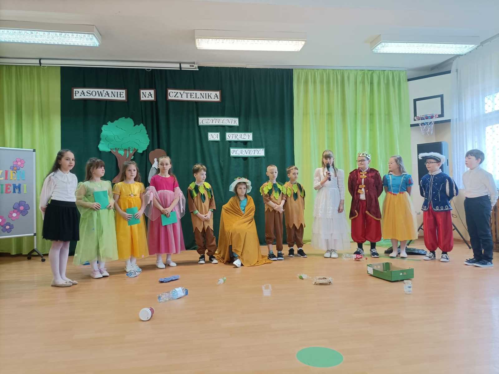 W minionym tygodniu nasza szkoła tętniła życiem i zieloną energią! Połączyliśmy dwa niezwykle ważne wydarzenia: Święto Ziemi oraz uroczyste Pasowanie Pierwszoklasistów na Czytelników Biblioteki. Głównym punktem programu był występ artystyczny, podczas którego młodzi aktorzy w obrazowy sposób pokazali nam, jak dbać o naszą planetę. Dzieci, ubrane w barwne, ekologiczne stroje, udowodniły, że każdy z nas – niezależnie od wieku – może być bohaterem walczącym o czyste środowisko. Podczas przedstawienia pierwszoklasiści, w obecności starszych kolegów i nauczycieli, złożyli uroczystą obietnicę, że będą szanować książki i regularnie odwiedzać świat literatury. Po symbolicznym pasowaniu każdy nowy czytelnik otrzymał pamiątkowy dyplom.