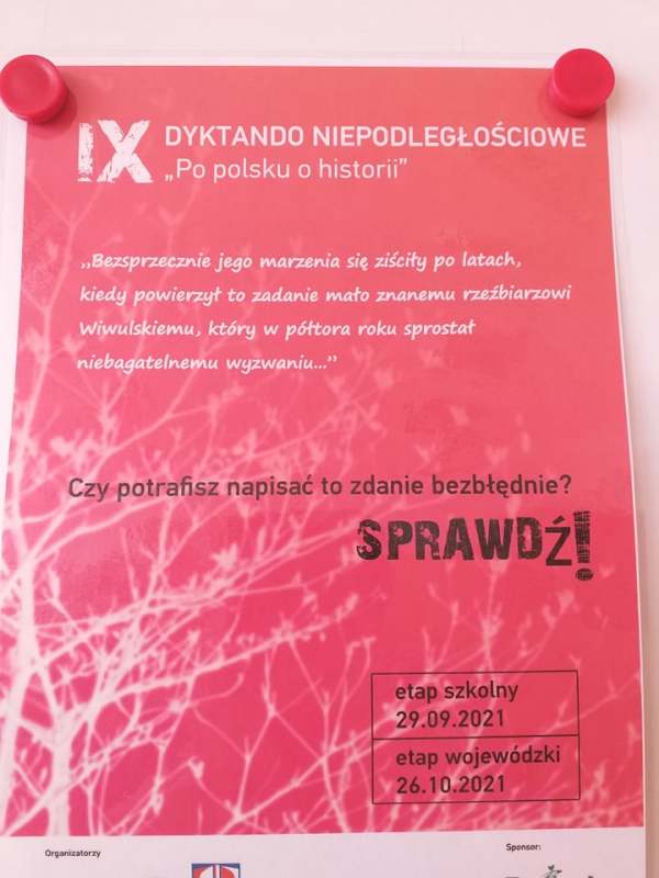 Dnia 29 września 2021 roku tradycyjnie uczniowie naszej szkoły stanęli przed trudnym zadaniem zmierzenia się ze znajomością nie tylko poprawnych zasad pisowni, ale też wiedzą z podstawowych faktów i postaci współczesnej historii Polski. Tegoroczne dyktando przywróciło pamięć III powstania śląskiego, ważnego fragmentu historii Śląska.