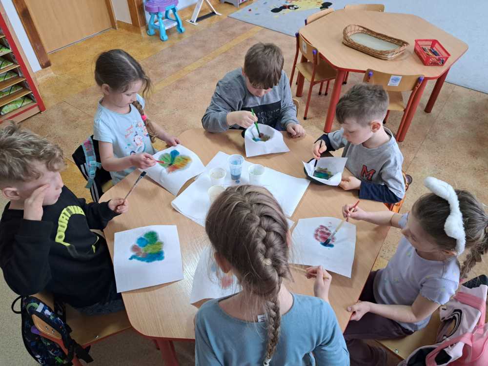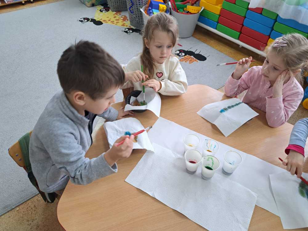 W naszym przedszkolu Święta Wielkanocne to wyjątkowy czas pełen radości i wspólnego przeżywania tradycji. Tegoroczne obchody trwały kilka dni i były bogate w różnorodne działania. Pierwszego dnia przedszkolaki z wielkim zaangażowaniem przygotowywały pisanki, wykorzystując nową, ciekawą metodę zdobienia. Dzieci z radością eksperymentowały z kolorami i wzorami.