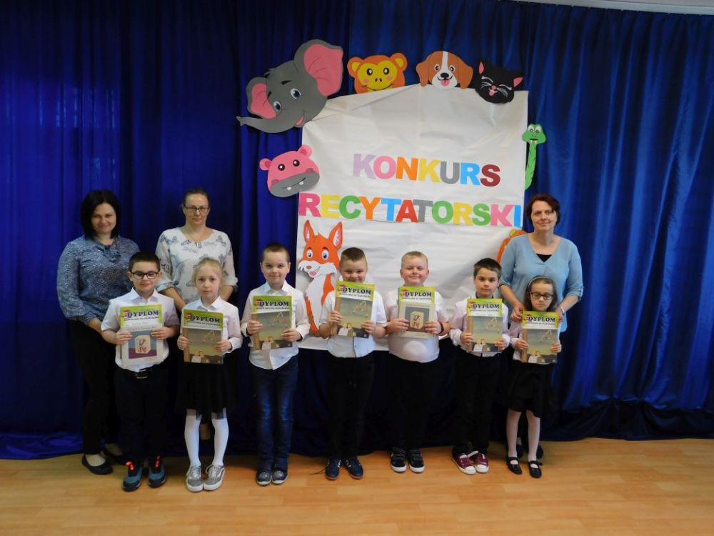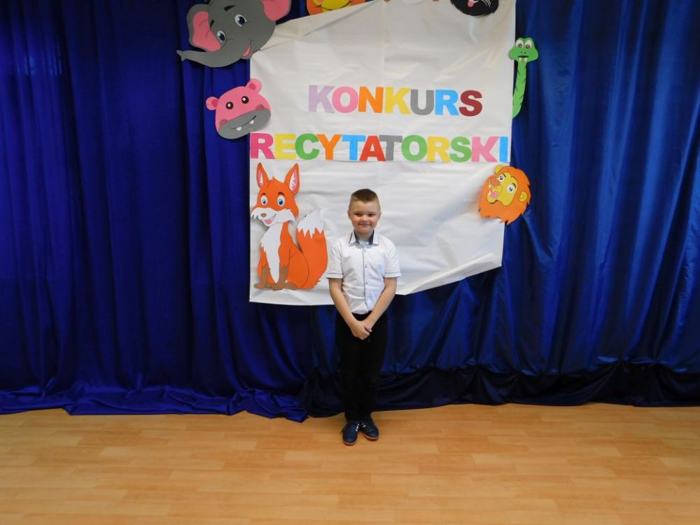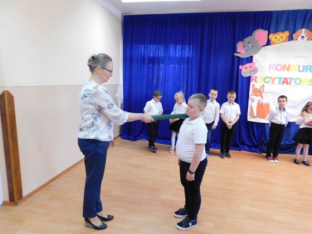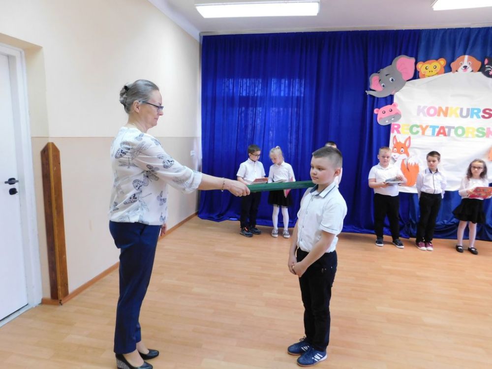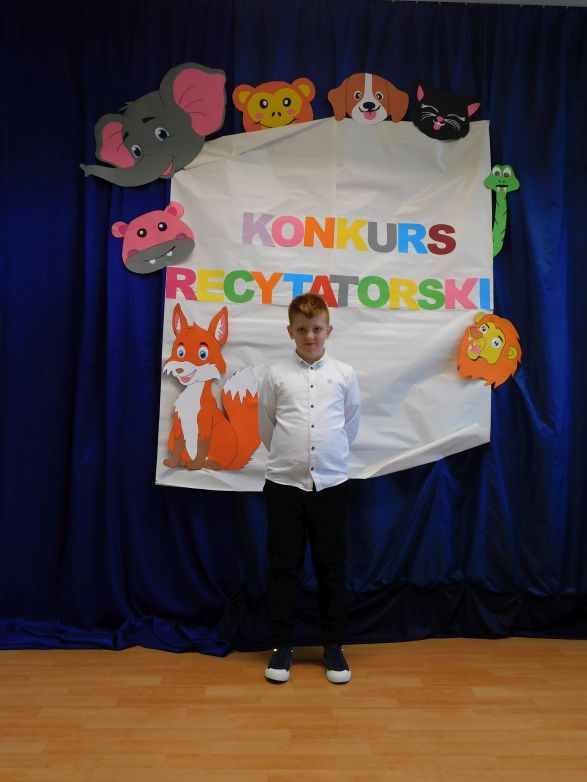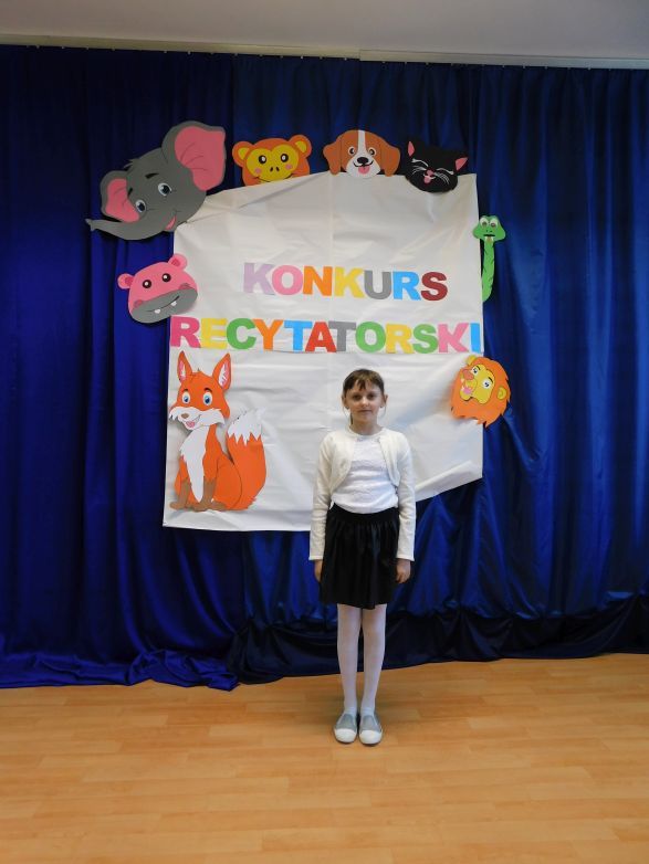 10 maja 2021 r. w naszej szkole jak co roku odbyła się kolejna edycja Szkolnego Konkursu Recytatorskiego dla klas I - III. Celem konkursu było przede wszystkim rozwijanie recytatorskich i aktorskich uzdolnień dzieci oraz upowszechnianie kultury języka. Każdy z uczestników przygotował wybrany przez siebie wiersz. Publiczność oklaskiwała gromkimi brawami wszystkich uczestników, a wiersze były ciekawe i barwnie zaprezentowane. Po wysłuchaniu uczniów komisja wyłoniła zwycięzców. Wszyscy uczestnicy konkursu otrzymali dyplomy i drobne upominki.