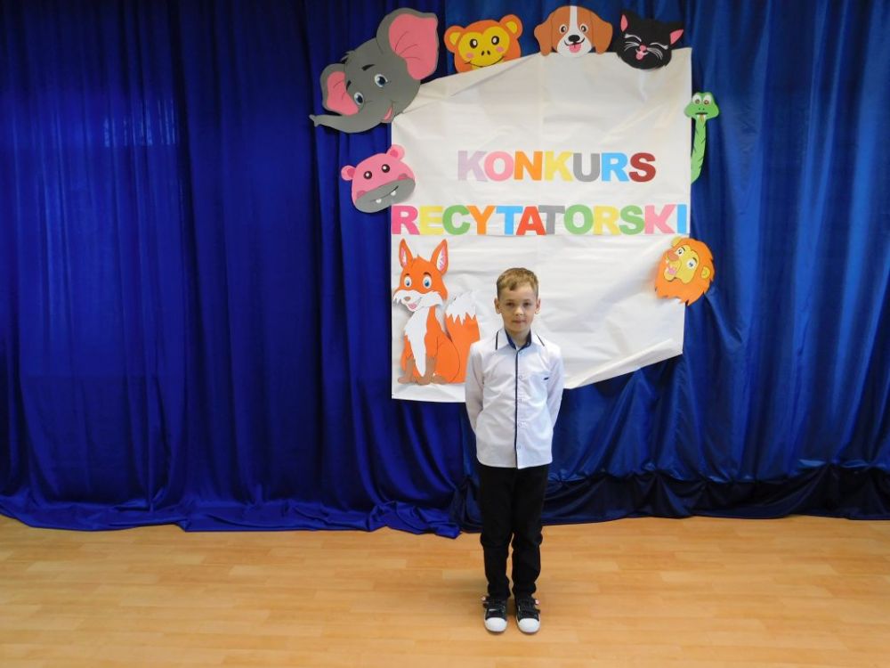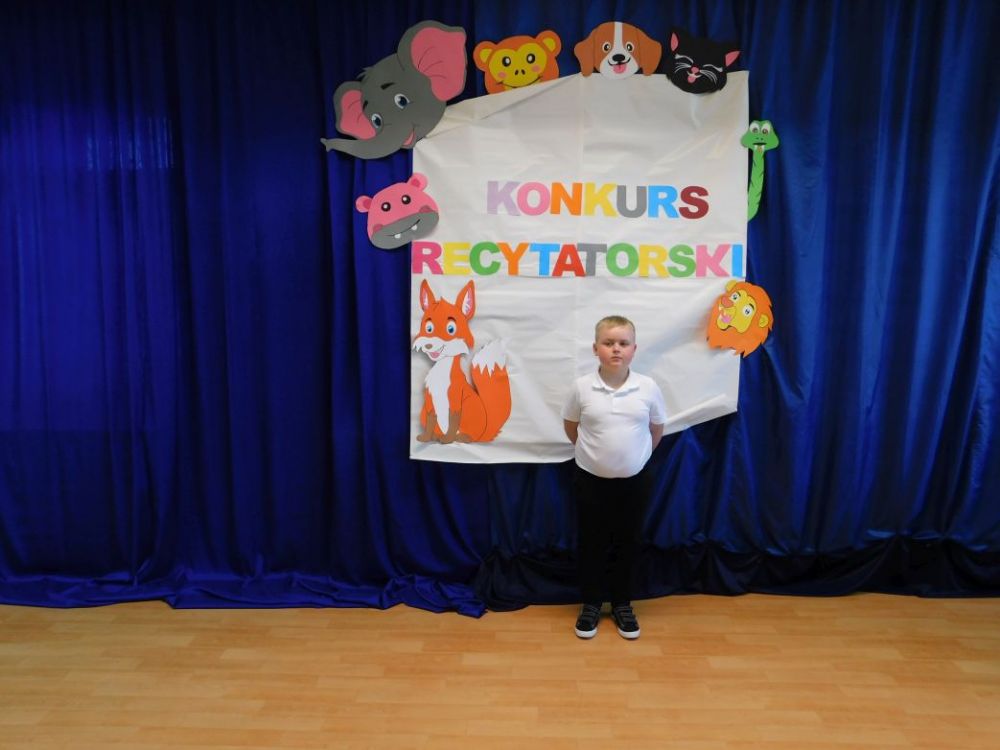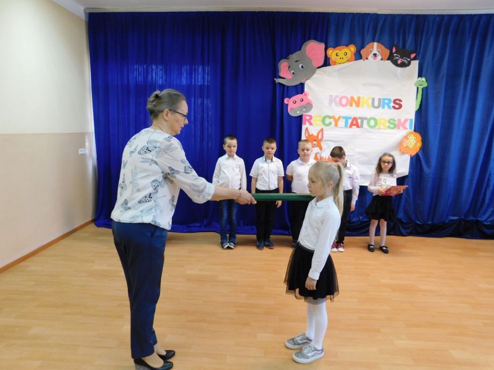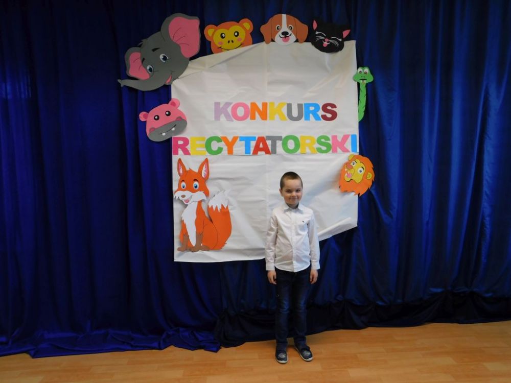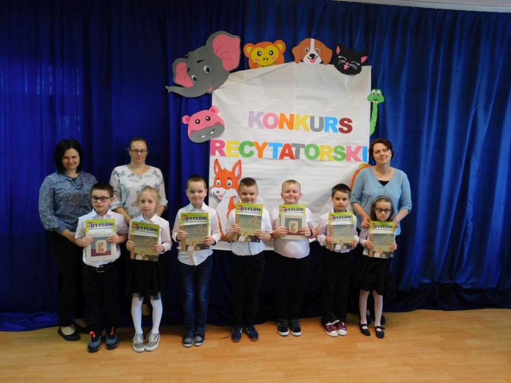 10 maja 2021 r. w naszej szkole jak co roku odbyła się kolejna edycja Szkolnego Konkursu Recytatorskiego dla klas I - III. Celem konkursu było przede wszystkim rozwijanie recytatorskich i aktorskich uzdolnień dzieci oraz upowszechnianie kultury języka. Każdy z uczestników przygotował wybrany przez siebie wiersz. Publiczność oklaskiwała gromkimi brawami wszystkich uczestników, a wiersze były ciekawe i barwnie zaprezentowane. Po wysłuchaniu uczniów komisja wyłoniła zwycięzców. Wszyscy uczestnicy konkursu otrzymali dyplomy i drobne upominki.