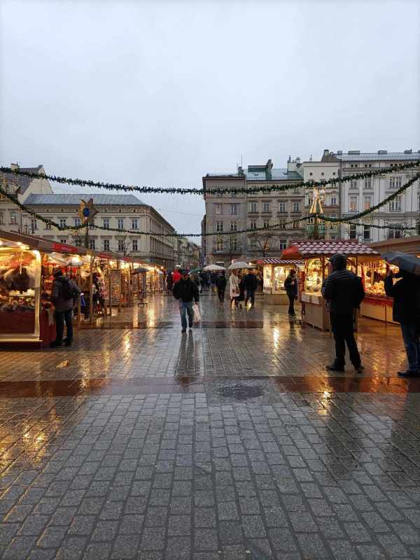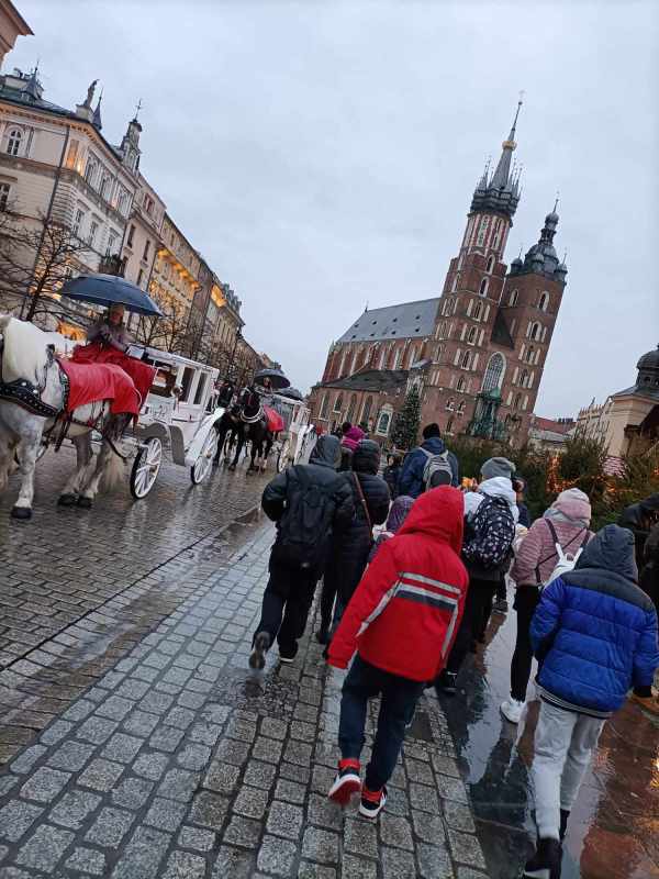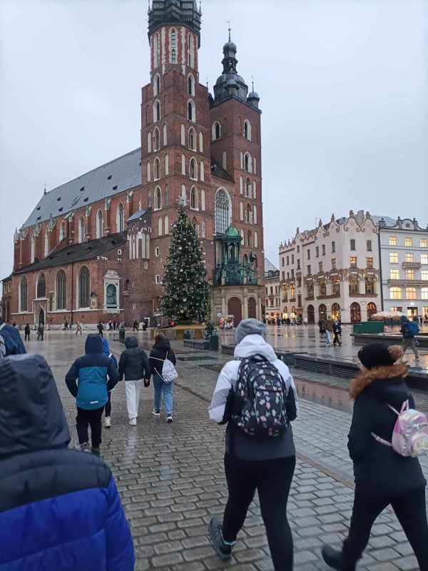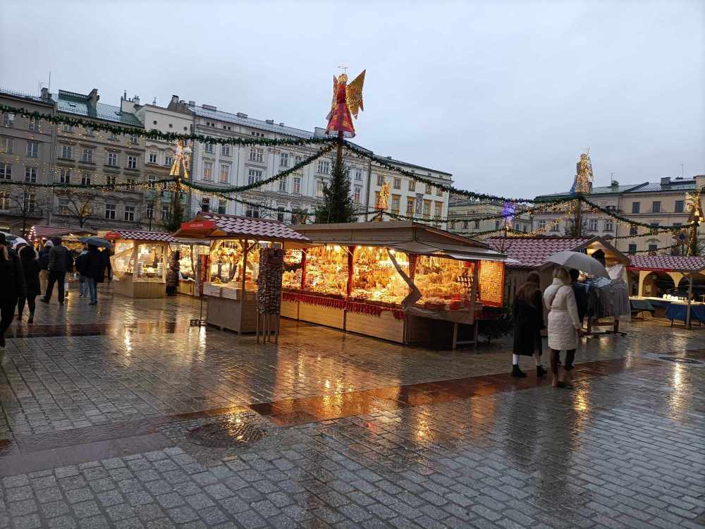 Kolejnym etapem wycieczki był Jarmark Bożonarodzeniowy. W ofercie wystawcy oferowali szeroką gamę świątecznych upominków i dekoracji, takich jak: ręcznie malowane bombki, ozdoby choinkowe, stroiki świąteczne, świece z wosku, ręcznie haftowane narzuty, obrusy i serwety, szopki, wyroby ceramiczne, wyroby z drewna, wełny, filcu, szkło artystyczne, biżuterię ja również pamiątki z Krakowa.