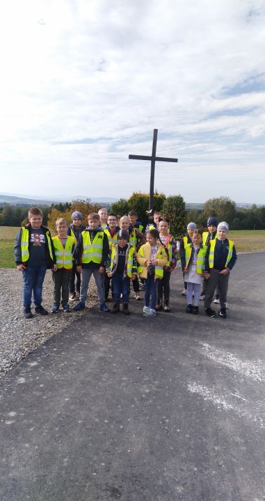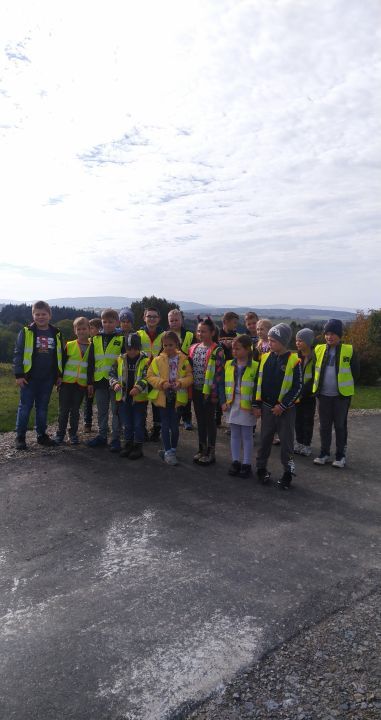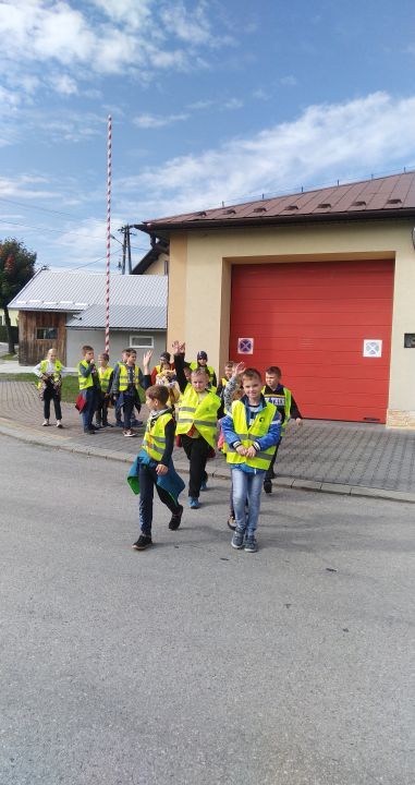 Aby promować  bezpieczne zachowania nasza szkoła włączyła się do akcji ,,Odblaskowa szkoła". W ramach tego projektu  dzieci uczą się przede wszystkim bezpiecznego poruszania się po drogach.  W ubiegłym tygodniu  klasy I-III wybrały się wraz z opiekunem na jesienny, edukacyjny spacer po najbliższej okolicy. Oprócz podziwiania pięknych widoków  uczniowie w praktyce mogli zademonstrować czego nauczyli się o ruchu drogowym. Dzięki kamizelkom odblaskowym dzieci były dobrze widoczne. Podczas spaceru zrobiliśmy także test ze znajomości okolicznych znaków drogowych oraz przeszliśmy obok budynku Ochotniczej Straży Pożarnej i przy okazji przypomnieliśmy sobie numery alarmowe.