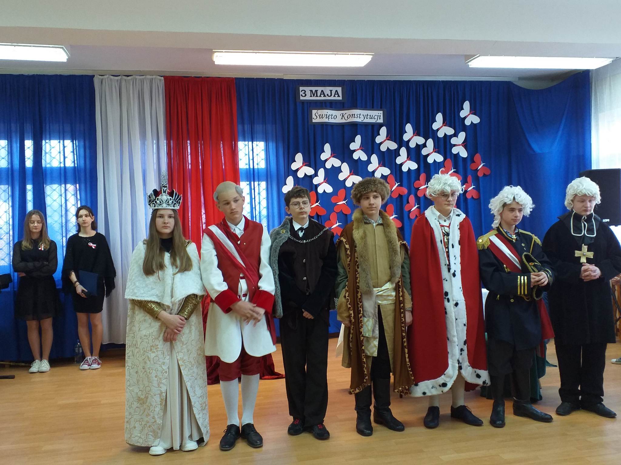 28 kwietnia w naszej szkole odbyła się akademia z okazji rocznicy uchwalenia Konstytucji 3 Maja. Po odśpiewaniu hymnu państwowego, uczniowie kl. VI-VIII pod okiem pana Sławomira Olszowskiego, przekazali zebranym zarys historyczny i okoliczności powstania pierwszej w Europie konstytucji. Występy uczniów wzbogacone zostały pięknymi strojami oraz doskonałym śpiewem. Urszula Gogola