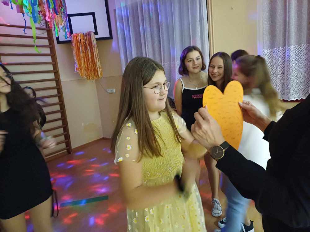 Najpierw bawili się młodsi uczniowie, a po zabawie dla najmłodszych przyszedł czas na dyskotekę dla klas IV-VIII. Były wróżby, mnóstwo uśmiechu i dobrej zabawy. Imprezę zakończył wspólny taniec - belgijka.
