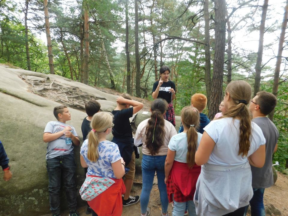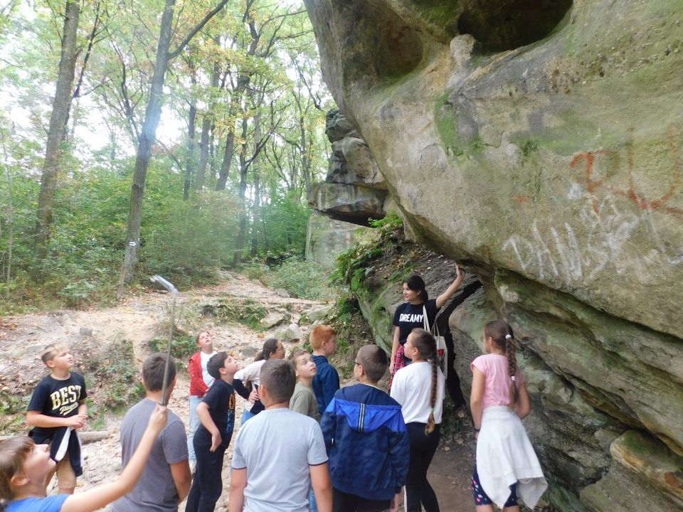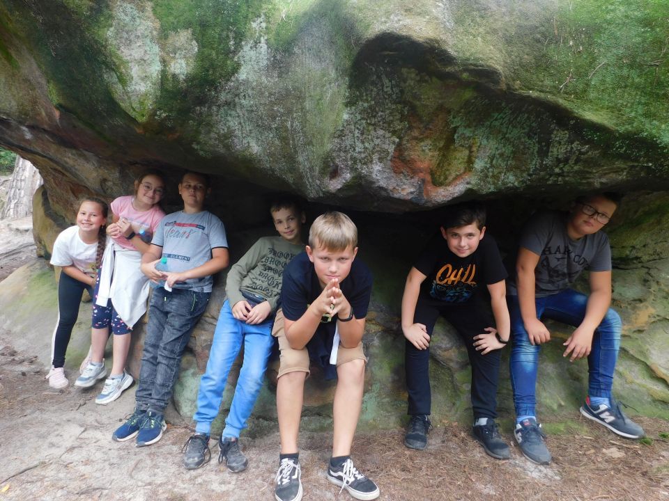 16 września dzieci z klas 0-5 odwiedziły rezerwat „Skamieniałego Miasta”w Ciężkowicach. Zwiedzanie rozpoczęliśmy od zajęć edukacyjnych oraz oglądania ekspozycji flory i fauny w Muzeum Przyrodniczym im. Krystyny i Włodzimierza Tomków. Największym zainteresowaniem cieszyły się stanowiska interaktywne np. szklana podłoga imitująca łąkę oraz batyskaf z trójwymiarową prezentacją multimedialną mieszkańców rzeki. Następnie odbyliśmy długi spacer z przewodnikiem po Skamieniałym Mieście. Oprócz ciekawych historii i legend o powstaniu skał, mieliśmy okazję poznać świat jego wyjątkowych mieszkańców, jakimi są nietoperze. Dowiedzieliśmy się m. in. ile waży najmniejszy nietoperz w Polsce, co to jest echolokacja i hibernacja oraz czy nietoperze są głuche. Były także zagadki i konkursy, za które dostawaliśmy nagrody. Na zakończenie wycieczki dzieci otrzymały dyplomy „Obrońców Nietoperzy”.