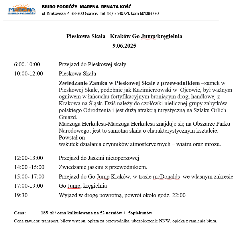 Wycieczka – Pieskowa Skała –Kraków Go Jump/kręgielnia 9.06.2025