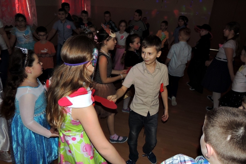 Uczniowie młodszych klas licznie przybyli w pięknych i pomysłowych strojach, wcielając się w różne postacie. Były wróżki, księżniczki i wiele, wiele innych. Pod koniec zabawy rozdane zostały nadesłane kartki walentynkowe.